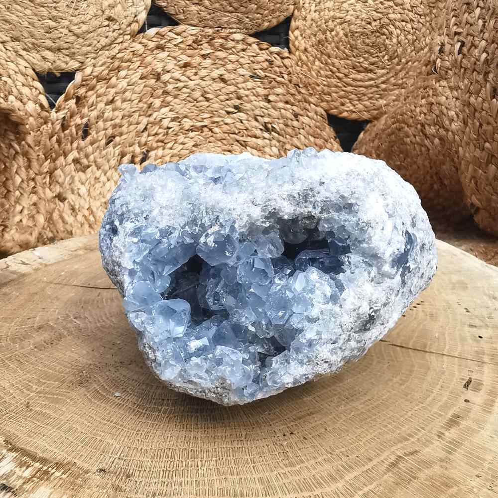 - Pour purifier une Célestine procéder par fumigation avec du Palo Santo, de la Sauge, de l’encens de Copal, Benjoin ou autre. Cette pierre ne supporte pas ni le contact avec l’eau, ni avec le sel.