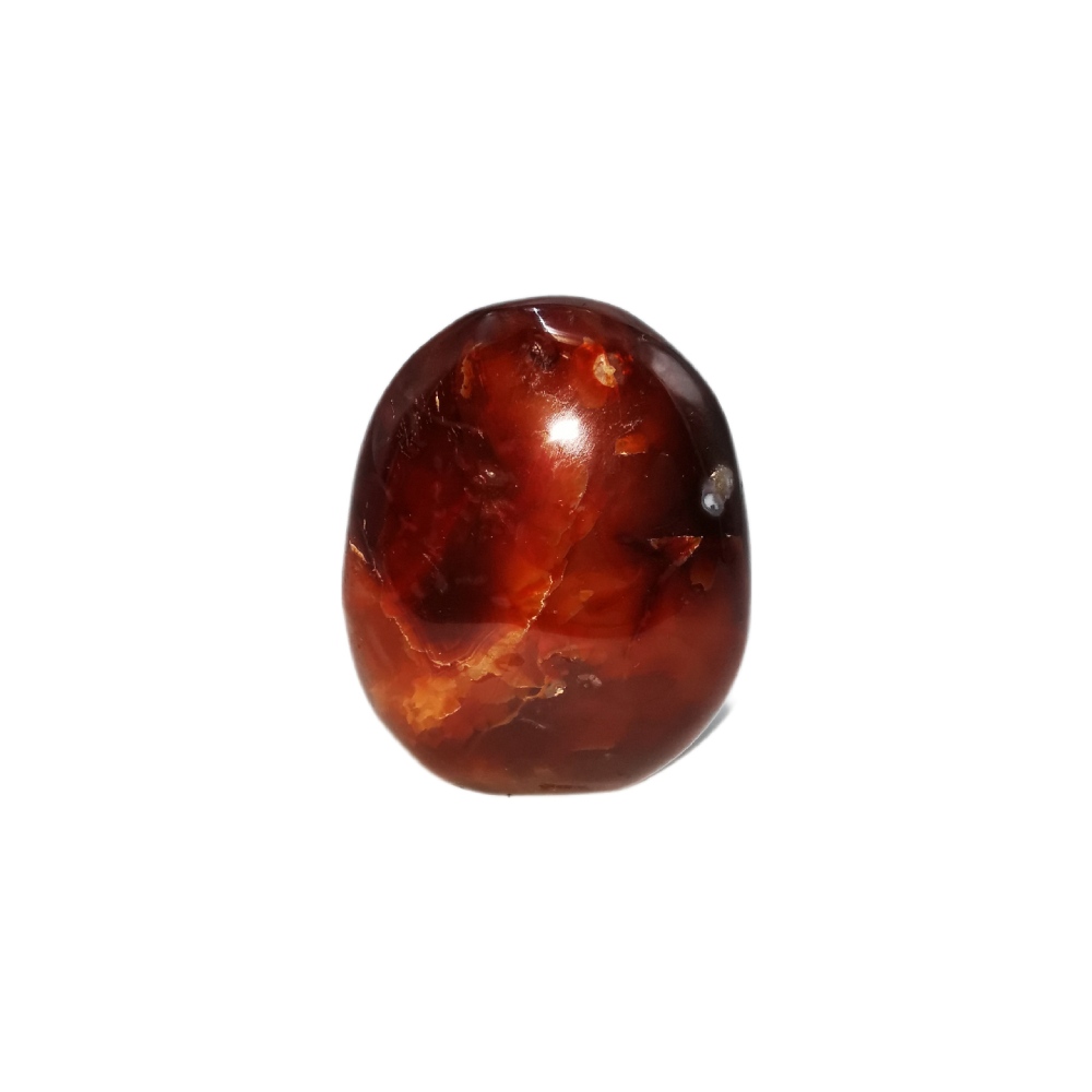 Appartenant à la famille des Quartz, c’est une variété translucide de Calcédoine Rouge. La Cornaline se trouve dans des cavités de roche volcanique où elle se développe à basse température. On retrouve des gisements en Inde, au Brésil, au Pérou, en Uruguay, au Mali, en Ecosse et en Islande.