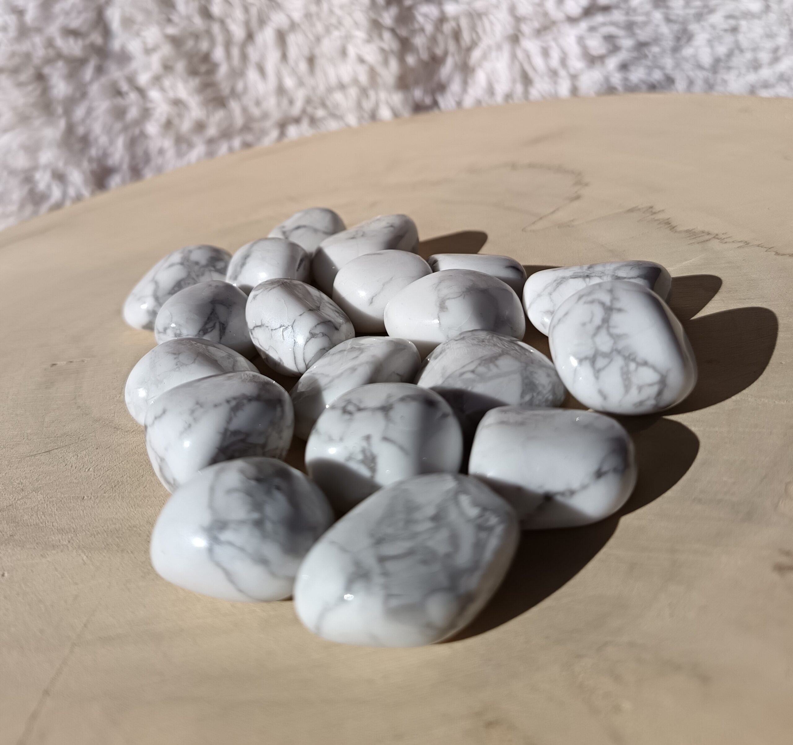 Jolie Howlite roulée d’un poids entre 10 g et 20 g.